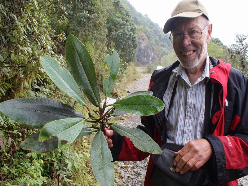 R. rex ssp. rex (Falconera). Stor opret stedsegrøn busk eller træ til 12 m. i naturen. Bladene er op til 37 cm lange, skinnende og med dybe nerver. Undersider med en tyk grå til uldent indument. Den store blomsterstand har op til 30 blomster i klasen. Kan være hvide til svagt lilla, lyserød og lilla-rosa, med en højrød ganeplet og pletter og kommer i maj. En smuk og imponerende art. Rimelig hårdførhed for en storbladet i Danmark, men kræver læ for at give lange blade. Vildtvoksende i SW Sichuan og N Yunnan, Kina, hvor den danner rene skove ved 3000-4000 m.