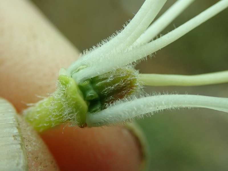 R. aureum var. aureum Sofiero, calyx, ovarie, støvdragere (håret for neden), griffel (glat). Foto: Hans Eiberg