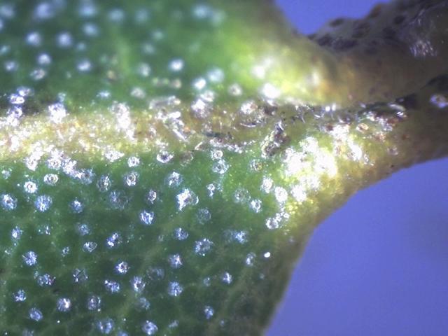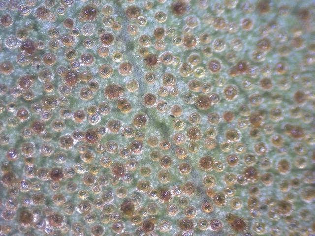 Leaves: Under surface of R. lutescens