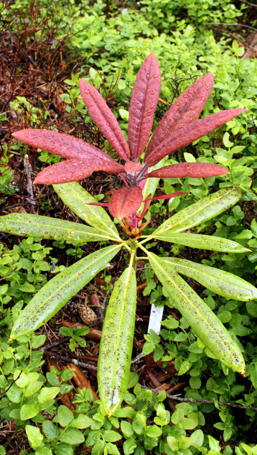 R. glanduliferum from RSBG accession # 503sd1996, with bronze new growth. Foto: Werner Brack