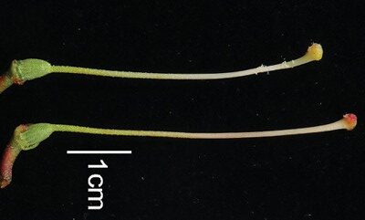 Abstract: Rhododendron mulunense, a new species of Rhododendron (Ericaceae) within subsect. Maddenia in sect. Rhododendron and endemic to karst areas of Guangxi and Guizhou Province, SW China, is described and illustrated. The new species most closely resembles R. wumingense, particularly in scale density on the abaxial leaf surface and in flower color and shape, but can be readily distinguished by its hairless shoots and leaves, larger tubular-funneled corolla, and longer and thinner white tube flushed with pink. According to the IUCN Red List Categories and Criteria, the threatened status of the new species is assessed as “Endangered, EN C2a(i), D.” We provide detailed documentation of its morphological characteristics, geographical distribution, digitized holotype voucher, and comparative photographs, along with a diagnostic table. An identification key is provided as a primary tool to enable taxonomic discrimination of this species from its congeners.