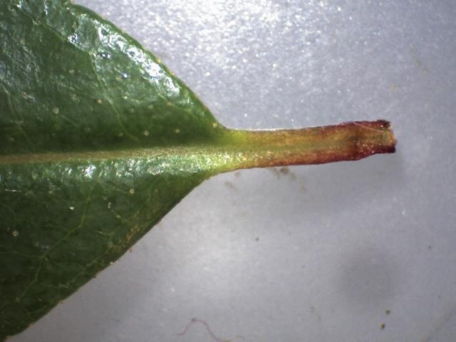 R. oreothrepes, skæl på bladoverfladen, bladstilk. Foto: Finn Bertelsen