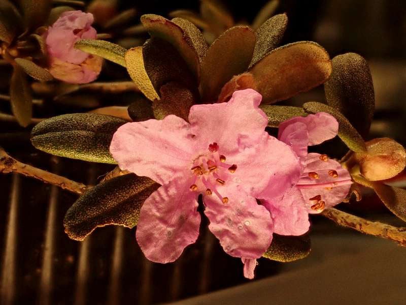 Flora of China Azalea lapponica Linnaeus, Sp. Pl. 1: 151. 1753; A. ferruginosa Pallas; A. parvifolia (Adams) Kuntze; Rhododendron confertissimum Nakai; R. lapponicum subsp. parvifolium (Adams) T. Yamazaki; R. palustre Turczaninow ex de Candolle (1839), not Kron & Judd (1990); R. parvifolium Adams; R. parvifolium subsp. confertissimum (Nakai) A. P. Khokhrjakov.