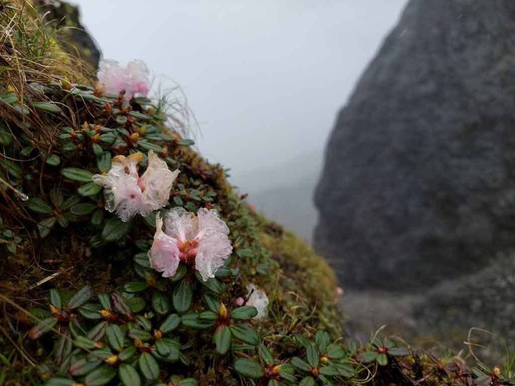 Despite the incessant rainfall and cold mountain winds, the team finally found the lovely and tiny R. pogonophyllum flowering beautifully and precariously on the rocks and rocky soils on open hillsides at Kyitsugang at an altitude of 4452 masl. Kyitsugang is considered by the residents of Dangchu to be the abode of their deity Kyitsub. R. pogonophyllum which was recorded in 1937 is thus rediscovered after 84 years in Bhutan. The specimens collected will be deposited in the National Herbarium of Bhutan (THIM) which is the official botanical repository and reference centre of the country.