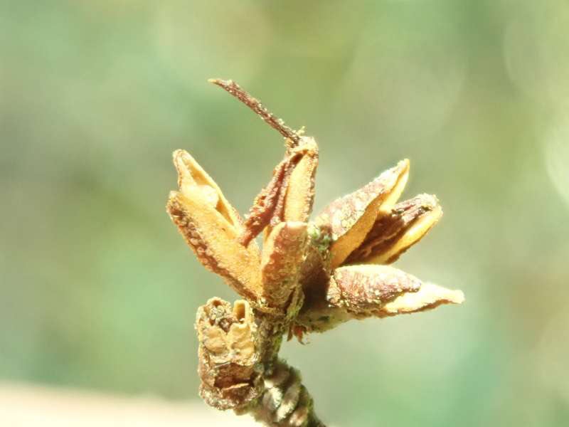 R. polycladum / R. scintillans. Blanke blade der er smallere og længere (L:B, 4-5:1). Knopskæl blivende.