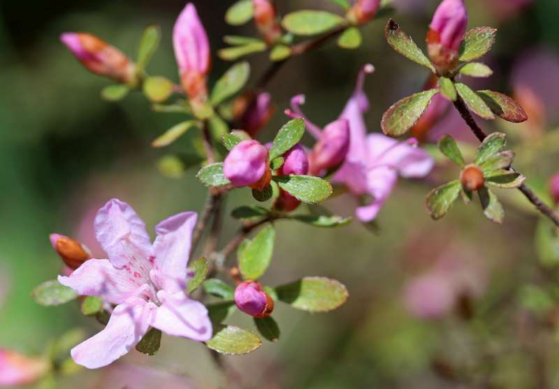 R. serpyllifolium (Tsutsusi). Et tæt-forgrenet stedsegrøn til delvis løvfældende azalea med tynde grene og små hårede blade op til omkring en halv cm. i længden. Blomsterne kommer i maj og er rosa til hvide. Vildtvoksende i S-Japan og en god arter for varmt og fugtigt klima.