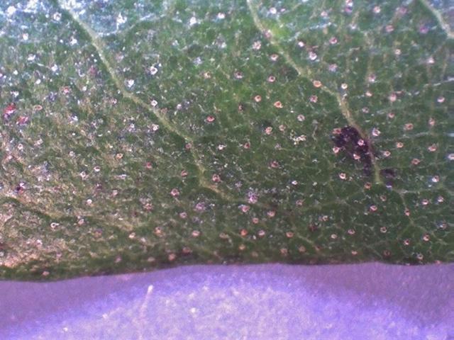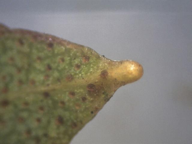 R. tatsienense skæl på bladundersiden ved mucro. Foto: Finn Bertelsen