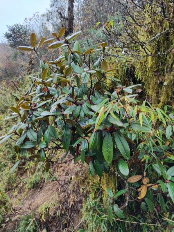 4 R. campylogynum var.myrtilloides ‘Black’ #343. Næsten sortlilla blomst 5 R. cinnabarinum #409. Planten indsamlet Yumtang Valley Sikkim 2000. I dag 3 m. høj