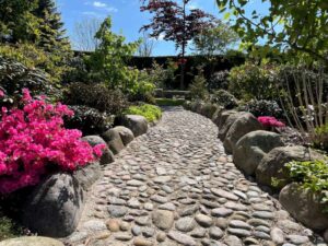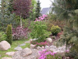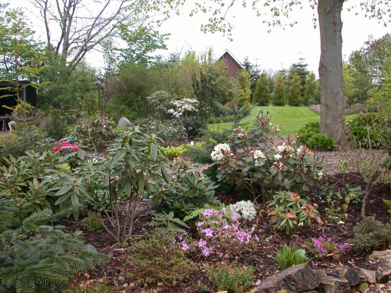 Besøg hos Per Kjær, Kongerslev 2014 Åben have den 10. maj 2014Foto: Hans Eiberg Per Kjær Flotte rhododendron i stor have og godt vejr