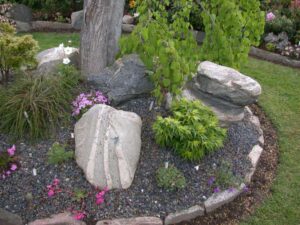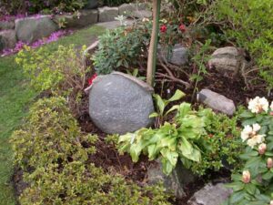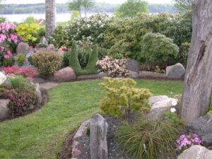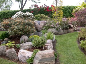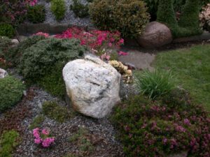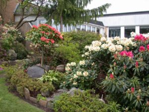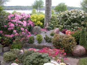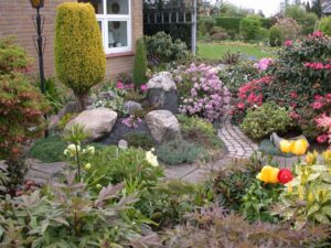Besøg hos Lilian og Kai Overgaard, Hadsund 2014 Åben have den 10. maj 2014Foto: Hans Eiberg Kai Overgaard Have med flotte rhododendron og “levende” sten